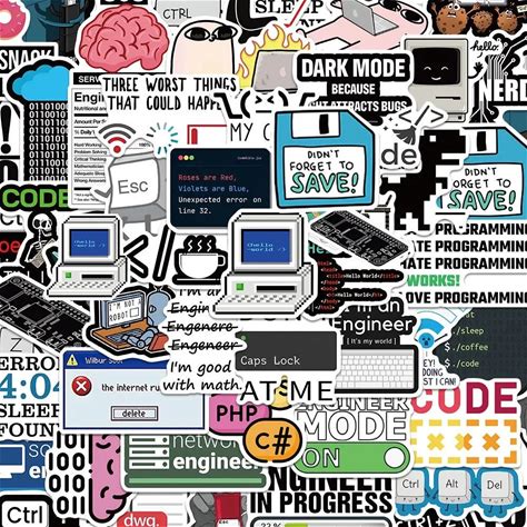10/50PCS Funny Programming Meme Stickers Java JS Php Docker Html Cloud Language Decals Computer